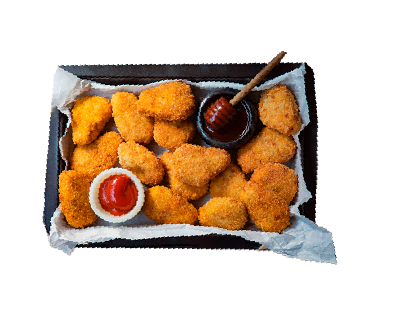 Crujiente nuggets de pollo con deliciosas salsas